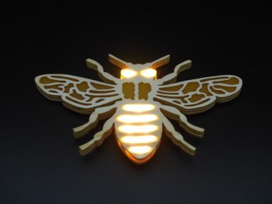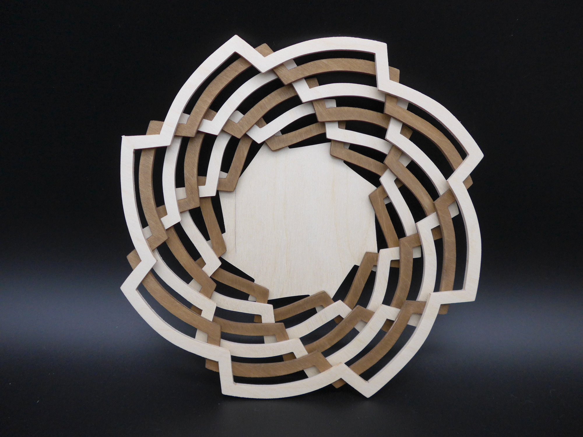 Am Computer entworfene und mit Laser ausgeschnittene Werkstücke - aus verschiedenen Materialien.